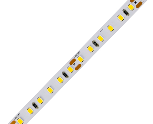 The 24V white LED Strip is engineered with a quad-row design featuring 2835 SMD LEDs, with a dense arrangement of 240 LEDs per meter.