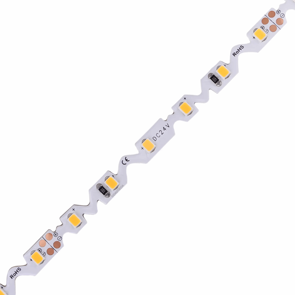 This white 2835 SMD zigzag LED strip, the low temperature double sided copperplate design and low voltage drop.