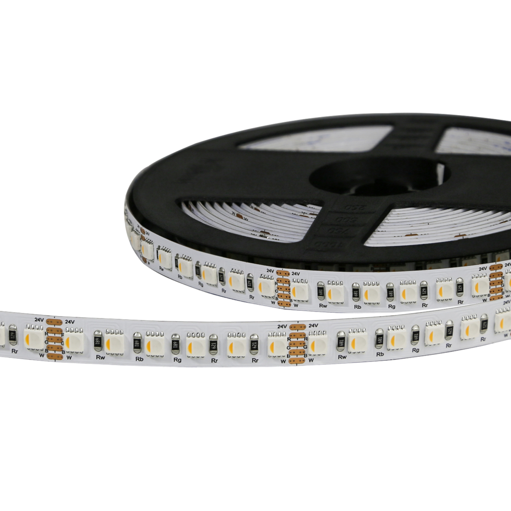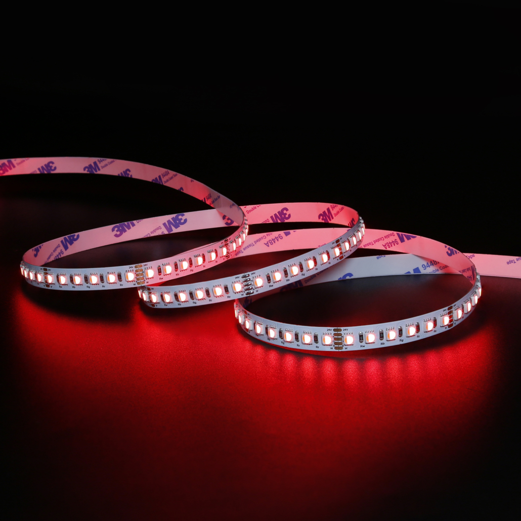 Using 5050 LED chips, each LED integrates RGB+cold white light or warm white light, supporting full color conversion and color temperature adjustment. The number of each LED is optional (30 / 60 /72/84 / 96/120leds per meter, etc.). The working Voltage(V) is DC 12V or 24V, with low power consumption and high light efficiency. Compatible with APP or remote control, suitable for home background lighting, commercial displays, stage lighting, KTV decoration and other scenes to meet visual lighting needs.