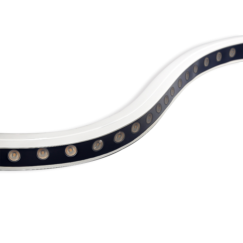 The flex LED wall washer light is designed to illuminate a large vertical surface such as a wall or a facade. The external coating is made of anti-UV, food grade silicone, extremely flexible and suitable for a wide range of applications