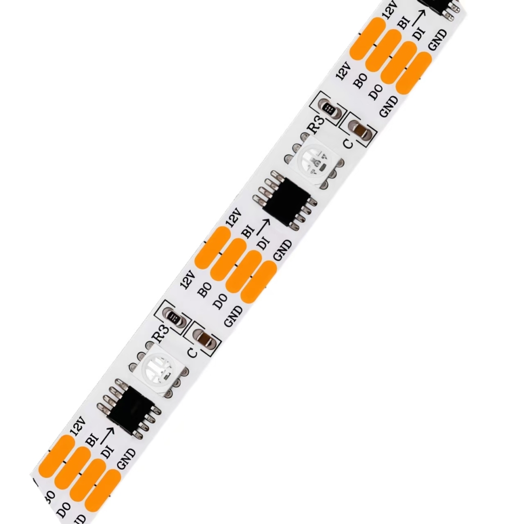 GS8208 smart LED strip light with double data line DATA1 DATA2, signal break-point continuous transmission, individually controllable.