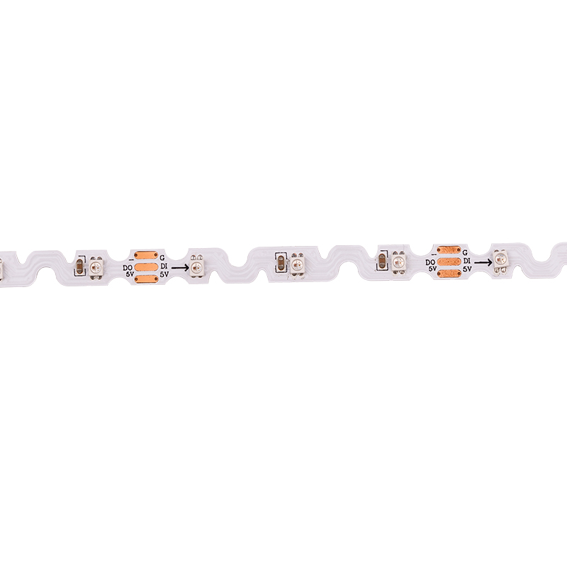This pixel multicolored RGBIC Zigzag LED strip is an smart LED strip light (built-in SK6805 IC,with Clock and Data signal wire).Great flexibility to be bent, twisted and folded to form irregular shapes. It can be used for signage industry and consumer electronics to create vivid animation effect.