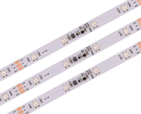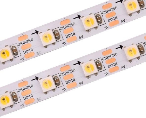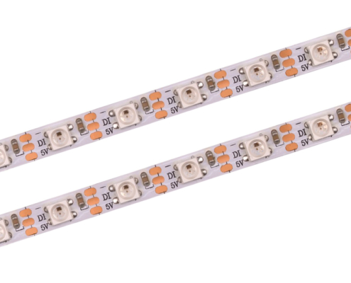 The SK6805 light strip uses ultra-small 2427 RGB LED, one single-wire and one clock-wire.